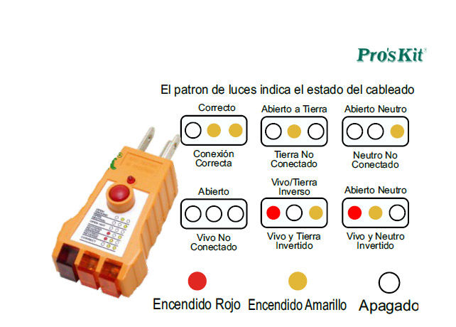 NT-1934 - Probador de Polaridad para Toma GFCI Polo a Tierra e Indicador LED