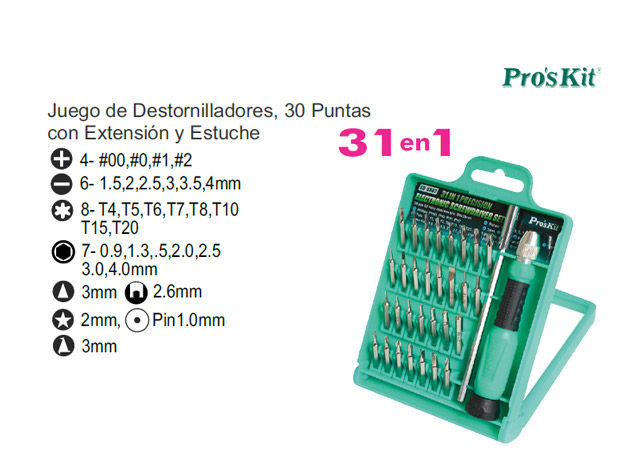 SD-9802 / Juego de Destornilladores, 30 Puntas con Extensión y Estuche